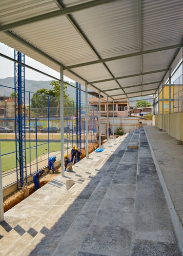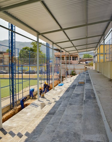 Execução de obra referente a Construção do Centro Esportivo e Campo de Futebol em Grama Sintética Brasileirinho. Trata-se da construção feito na sua integridade desde a fundação até os acabamentos finais, abrangendo a sede clube e o campo de grama sintética, instalações especiais e sistema de drenagem.