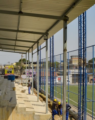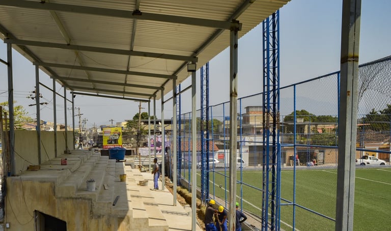 Execução de obra referente a reforma do Campo do União. Trata-se da construção de rampa de acesso, vestiários, banheiro PNE, copa, cozinha, depósitos de materiais, academia, pista de caminhada, salas de xadrez, pintura, escultura, lutas, dança, sala de aula regular, cisterna de água potável, reservatório superior e elevatória de esgoto. Reforma do campo de futebol, quadra poliesportiva, arquibancadas, vestiários, banheiros, área de guarda de material esportiva, área técnica elétrica. Inclusão de área técnica para condensadoras. Instalação de sistema de barreira de contenção de água de chuva e paisagismo.