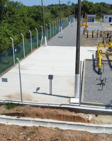 Execução da obra Reforço Santa Cruz Fase I - Base, Fase ll - Tanque e Fase lll - Base. Através da Naturgy/ Construtora Elevação, contemplando toda estrutura civil da obra, entre elas: bases, shelter, bacia de contenção, canaleta, caixa para válvula, remanejamento, pintura e elétrica.